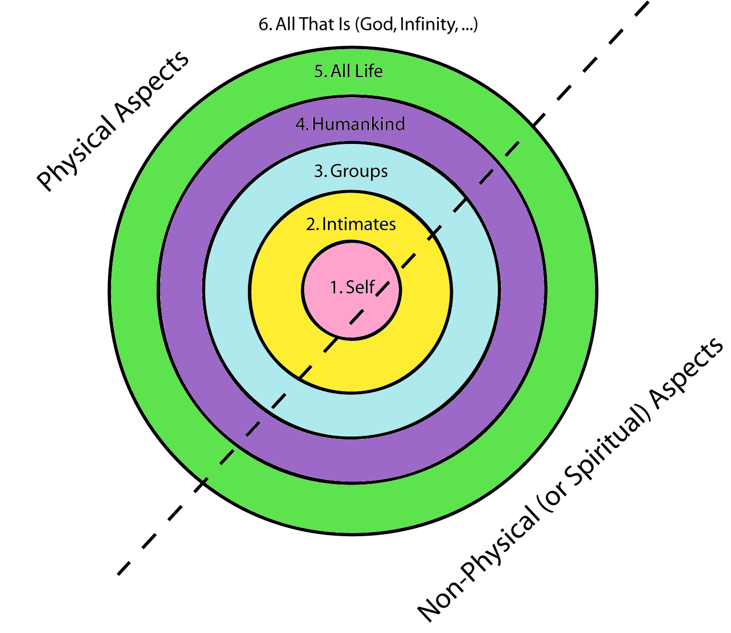 If we have a personal success, we feel our 1st (self) domain benefiting. If we fall in love (and it is mutual!), or we have a new baby in the family, or we make a new wonderful friend, we feel our 2nd (intimates) domain expand. When we join a group of like-minded people to achieve a common purpose, either for work or play, that improves our 3rd (groups) domain.